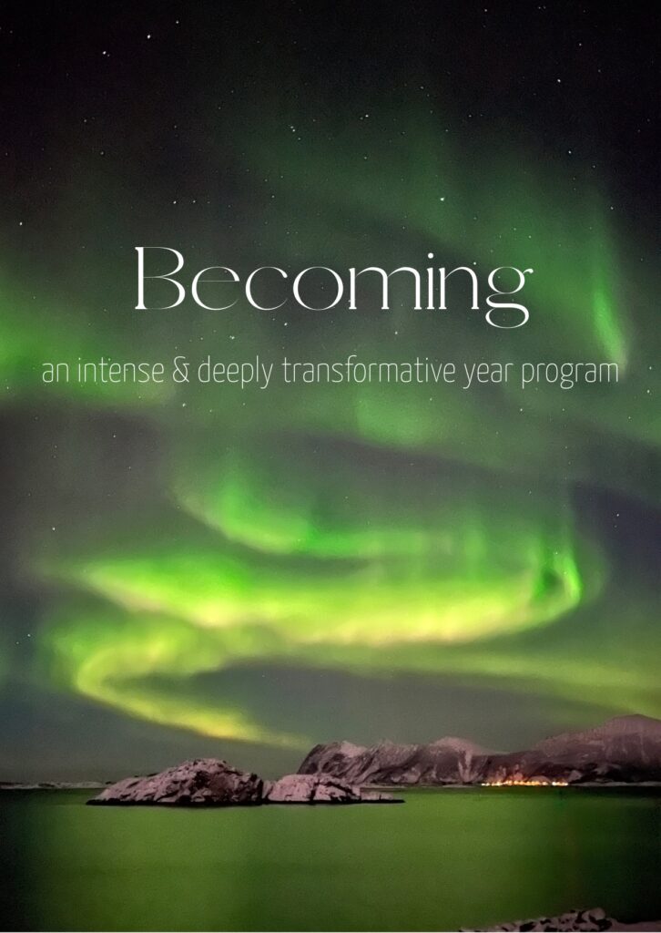 ‘Becoming.’ is an intense transformative year program based on the book ‘Natureconomy – a Northern Lights Vision’. It’s the process of fully activating your DNA and becoming a complete, activated human. It supports you to apply the wisdom of the Northern Lights to your daily life, to your being. Its a cycle of deep healing, creating space, so your soul can anchor more into your physical.